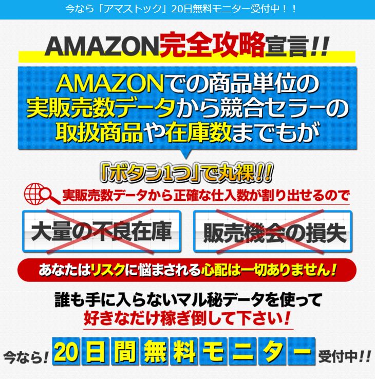 「Amazon輸入転売リサーチツール「アマストック」」をお得にゲットしましょう!