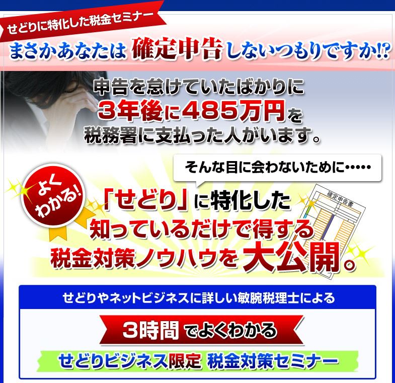 「せどりに特化した税金セミナー」をお得に入手しましょう!