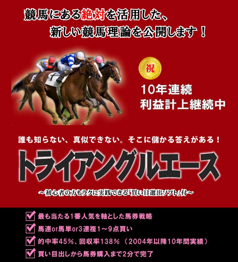佐野 友哉さんがリリースしている馬券術「トライアングルエース」。