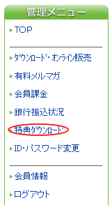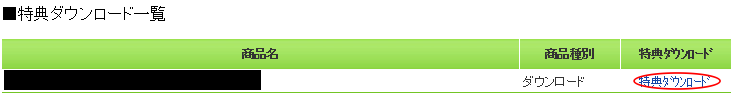 特典ダウンロード一覧から、「特典ダウンロード」をクリック