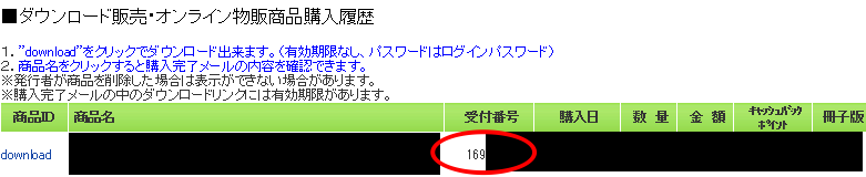 対象商品の横にある受付番号をチェック