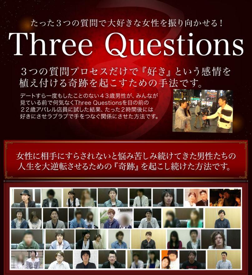 株式会社 KABUTOさんがリリースしている惚れさせるテクニック【Three Questions プログラム】。